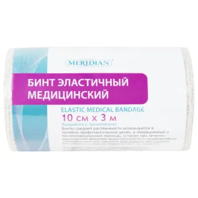 Бинт медицинский эластичный 3 м х 10 см с 2 застежками MERIDIAN