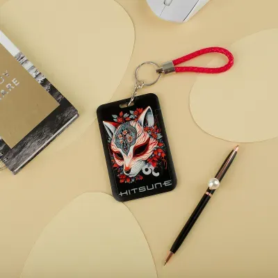 Бейдж вертикальный MESHU "Kitsune", 110*70мм, петля с карабином, 2D печать, опп пакет с европодвесом