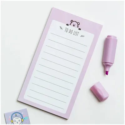To Do list MESHU. Размер - 80×150 мм. Бумага офсетная 80 г/м2. 50 листов с оригинальным дизайном. На склейке. Индивидуальная упаковка в пакет с европодвесом.