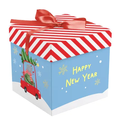 Коробка складная подарочная MESHU "Новый год", (15*15*15см), с лентой, отд фольгой