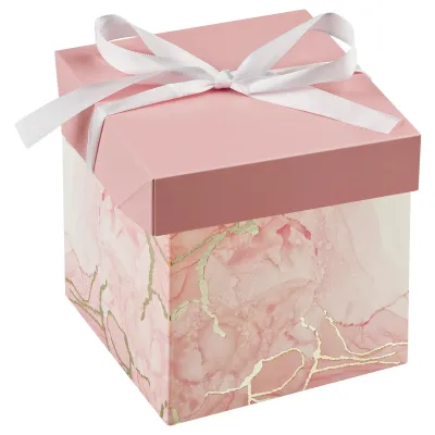 Коробка складная подарочная MESHU "Розовый мрамор", (15*15*15см), с лентой, отд фольгой