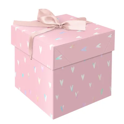 Коробка складная подарочная MESHU "Сердца", (15*15*15см), с лентой, отд. фольгой