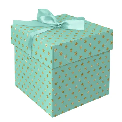 Коробка складная подарочная MESHU "Stars", (15*15*15см), с лентой, отд. блестками