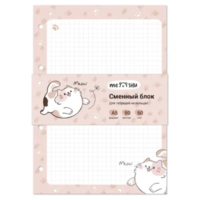 Сменный блок 80л., А5, MESHU "Нappy cat", пленка т/у, в клетку