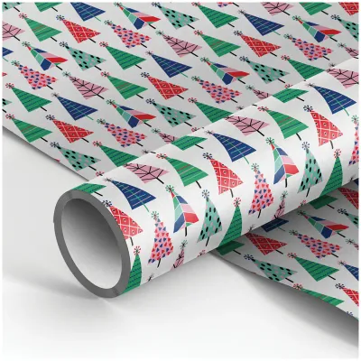 Упаковочная бумага белый крафт 70*100см, MESHU "Elegant Christmas trees", 70г/м2