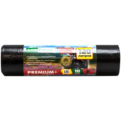 - Мешки для мусора 120л Mirpack "Premium+" ПВД, 70*110см, 40мкм, 10шт., черные, в рулоне — это продукция бренда Mirpack. В нашем магазине представлен широкий ассортимент товаров Mirpack.