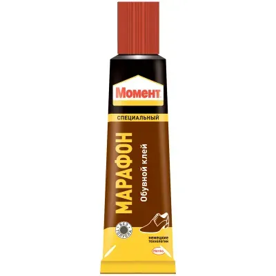 Клей Момент «Марафон» — специализированный обувной клей для надёжного и долговечного ремонта обуви в домашних условиях и в мастерских. Формула адгезива рассчитана на работу с материалами, из которых изготавливается современная обувь: кожей, кожзаменителем, резиной, тканью, войлоком и пластиком.