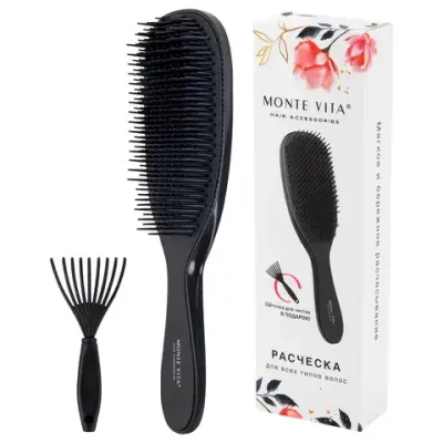 - Расческа для волос массажная 22,5х6,5 см, чёрная + щетка для чистки В ПОДАРОК, MONTE VITA (МОНТЕ ВИТА), 457429 — это продукция бренда MONTE VITA. В нашем магазине представлен широкий ассортимент товаров MONTE VITA.