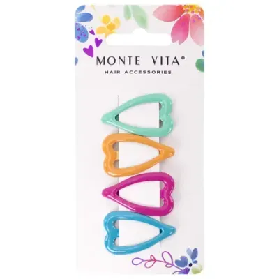 - Заколки для волос НАБОР 4 шт., 3,5 см, клик-клак, сердечки, глянцевый, разные цвета, MONTE VITA (МОНТЕ ВИТА), 457082 — это продукция бренда MONTE VITA. В нашем магазине представлен широкий ассортимент товаров MONTE VITA.
