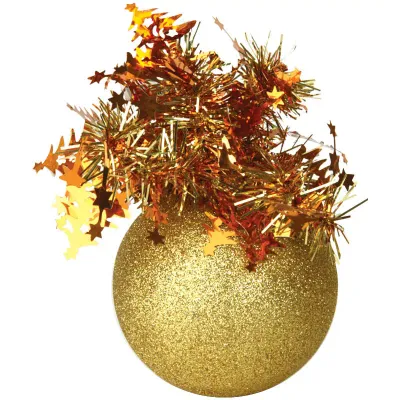 - Шар пластиковый "Праздничный" 75мм, с блестками, с короной из мишуры, золотой — какой бренд?