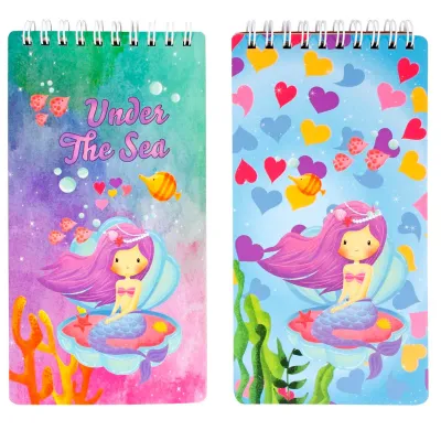Блокнот 95*180мм на гребне, 40л., "Русалки", 80г/м2, тонированный блок, твердая обложка, ассорти