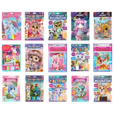 - Есть ли Аппликация АССОРТИ 15 видов, 17х23 см, перья, эва, фольга, мозаика, на картоне, МУЛЬТИ АРТ, 5933 в наличии?