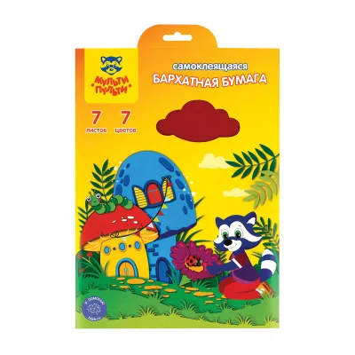 - Бархатная бумага самоклеящаяся А4, Мульти-Пульти "Приключения Енота", 7л., 7цв., в папке с европодвесом — это продукция бренда Мульти-Пульти. В нашем магазине представлен широкий ассортимент товаров Мульти-Пульти.