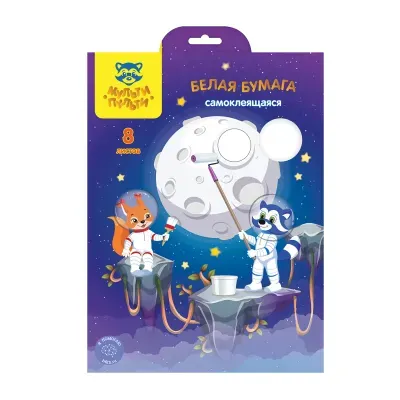 - Основные характеристики Белая бумага самоклеящаяся А4, Мульти-Пульти, 8л., в папке, "Енот в космосе": Количество цветов: 1, Тип: Бумага цветная, Формат: А4, Дизайн блока: Однотонный. Полный список характеристик доступен на странице товара.
