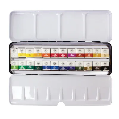 Акварель Mungyo, профессиональная, 24 цвета, мал. кюветы, металлический пенал