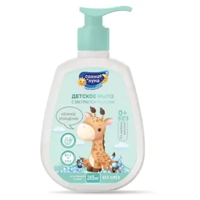 - Основные характеристики Мыло жидкое гипоаллергенное детское 265 мл, СОЛНЦЕ И ЛУНА FUN "Экстракт ромашки", дозатор, 14608: Серия: KIDS, Вид упаковки: Флакон, Гипоаллергенное: Да, Мыло-крем: Нет. Полный список характеристик доступен на странице товара.