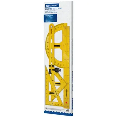 Набор чертежный для классной доски Classic (2 треугольника, транспортир, циркуль, линейка 100 см), BRAUBERG, 210871