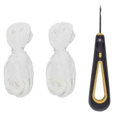 Набор в герметичной упаковке включает в себя шило и нить для прошивки. Шило с ушком имеет длину острия 4 см. Нить для прошивки - 60 м. Упаковка - блистер с европодвесом.