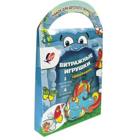 Набор ЛУЧ «Единорожки» предназначен для рисования витражными красками по трафарету.