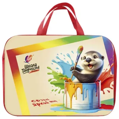 Подарочный набор для творчества ЛУЧ "Школа творчества" состоит из различных канцелярских товаров, которые упакованы в удобную для переноски красочную папку на молнии с двумя ручками. Все они включены в обязательный список покупок к школе.