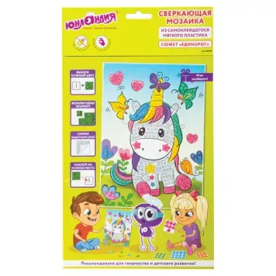 - Цена на Набор для творчества "Сверкающая мозаика из мягкого пластика", "Единорог", 21х29 см, ЮНЛАНДИЯ, 662363 составляет 296,5 рублей. При оптовом заказе цена от 247,74 рублей.