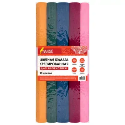 - Основные характеристики Бумага гофрированная/креповая, 110 г/м2, 50х250 см, НАБОР 10 рулонов, интенсив, ОСТРОВ СОКРОВИЩ, 112555: Цвет: разноцветный, Количество цветов: 10, Серия: Набор креп бумаги плотной 110 г/м2, Ширина: 50. Полный список характеристик доступен на странице товара.