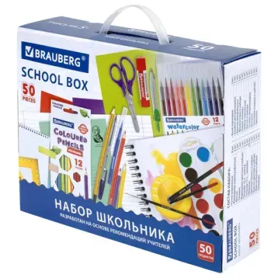 - Цена на Набор школьных принадлежностей в подарочной коробке BRAUBERG "ШКОЛЬНЫЙ УНИВЕРСАЛЬНЫЙ", 50 предметов, 880123 составляет 1 225,75 рублей.