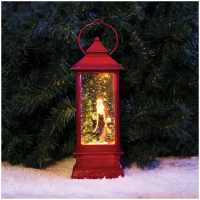Декоративный фонарь на батарейках с эффектом снегопада и подсветкой "Дед Мороз", 27см