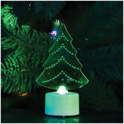 Светодиодная фигурка на подставке "Елочка 2D" станет прекрасным украшением домашнего интерьера, рабочего стола или послужит просто символичным новогодним комплиментом. фигурка работает от батареек LR44 (в комплекте), плавная смена цвета (RGB) создаст приятное праздничное настроение.