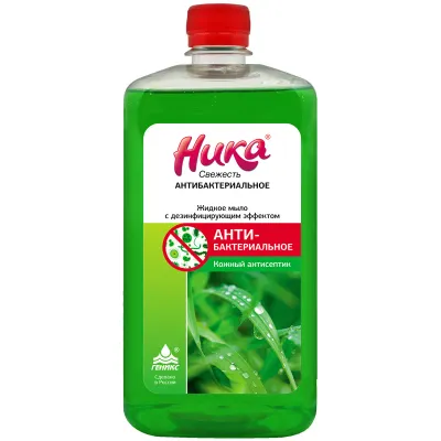 Мыло жидкое дезинфицирующее 1 л, НИКА "Свежесть", антибактериальное, крышка