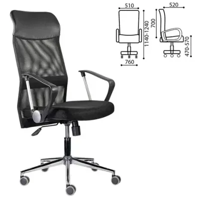 Кресло "Директ Лайт" МС-040, высокая спинка, с подлокотниками, хром, черное