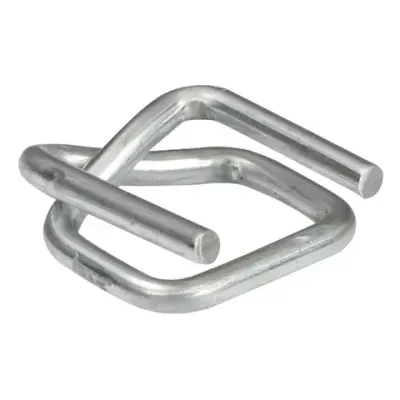 Пряжка проволочная для полипропиленовой ленты применяется для механического скрепления пластиковых лент при небольших объемах упаковки или в случае, если при транспортировании нужно произвести подтягивание свободного конца.