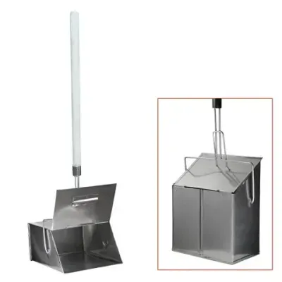 Перейти к содержимомуСовок для мусора, 24х29 см, закрывающаяся крышка, деревянная рукоятка 75 см, "ЛОВУШКА", металлический