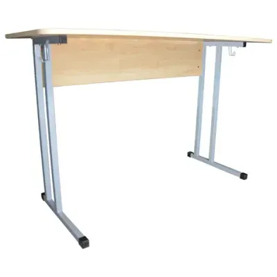 Сверхпрочный металлический каркас из стальных труб сечения 25х25х1,5 мм. На каркас нанесено стойкое к механическому воздействию порошковое полимерное покрытие. Столешница имеет размеры 1200х500 мм, что позволяет комфортно разместиться за ним двоим людям. Столешница и царга изготовлены из плиты ЛДСП 16 мм с ламинированным покрытием. Углы столешницы имеют скругление радиусом 60 мм, что обеспечивает безопасность при эксплуатации. По периметру столешница защищена ударопрочной кромкой ПВХ толщиной