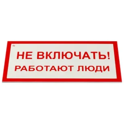 - Цена на Знак электробезопасности "Не включать! Работают люди", КОМПЛЕКТ 5 шт., 100х200х2 мм, пластик, А 01, А01 составляет 300,04 рублей. При оптовом заказе цена от 287,44 рублей.