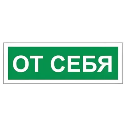 - Цена на Знак вспомогательный "От себя", 175х60 мм, пленка самоклеящаяся, 610042/В60 составляет 27,9 рублей. При оптовом заказе цена от 26,64 рублей.
