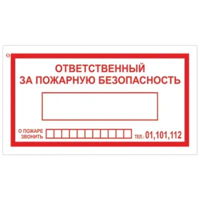 - Сколько стоит Знак вспомогательный "Ответственный за пожарную безопасность", 250х140 мм, пленка самоклеящаяся, 610049/В43?