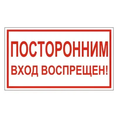- Основные характеристики Знак вспомогательный "Посторонним вход воспрещен!", 300х150 мм, пленка самоклеящаяся, 610038/В56: Материал: пленка ПВХ, Тип знака: запрещающий, Высота: 150, Ширина: 300. Полный список характеристик доступен на странице товара.