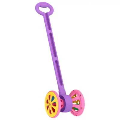 Особенности каталки: - стильный фиолетово-розовый дизайн; - удобные ручки для безопасного хвата - цветные шарики внутри создают приятный звуковой эффект; - прочный безопасный пластик; - компактные размеры (15x12x55 см) – идеально для детской ручки. Для чего нужна каталка: - помогает учиться ходить; - развивает координацию движений; - тренирует равновесие; - укрепляет мышцы ног; - делает первые шаги малыша более уверенными.