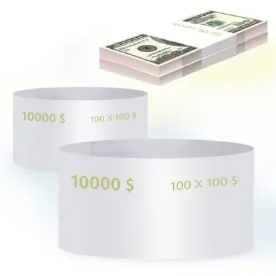 Банковская упаковка, исполненная в виде склеенной кольцевой поперечной бандероли с нанесением количества банкнот и номинала, а так же другой обязательной информации. Позволяет кассиру быстро, просто и надежно сформировать корешок банкнот (100 листов).
