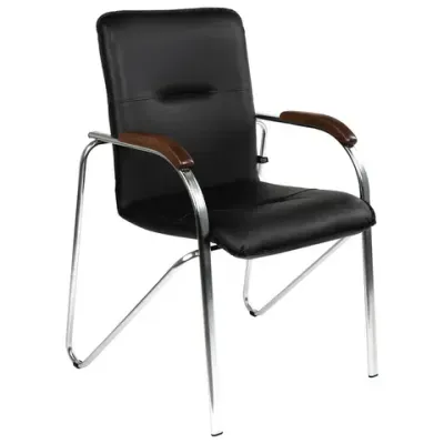 - Сколько стоит Кресло для приемных и переговорных "Samba", деревянные накладки, хромированный каркас, кожзам черный?