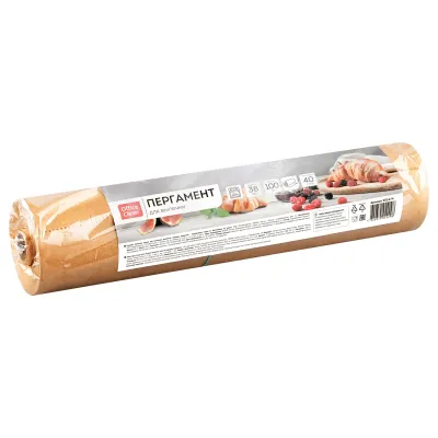 Бумага для выпечки OfficeClean, бежевая, 38см*100м, 40г/м2, в рулоне, в пленке, без силиконового покрытия