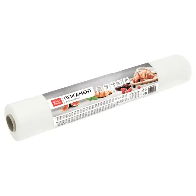 Бумага (пергамент) для выпечки OfficeClean, белая, 38см*50м, 38г/м2, в рулоне, в пленке, без силиконового покрытия