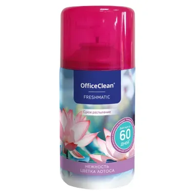 - Сменный баллон для освежителя воздуха OfficeClean "Нежность цветка лотоса", сухое распыление, 250мл — это продукция бренда OfficeClean. В нашем магазине представлен широкий ассортимент товаров OfficeClean.
