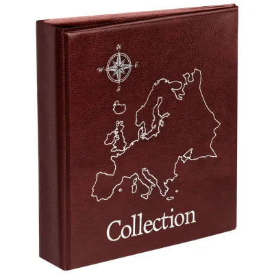 Альбом для монет OfficeSpace "Карта" формат Optima, 230*270, на кольцах, бордовый, 10л., иск. кожа