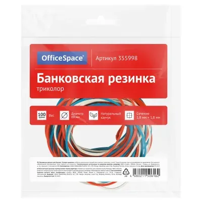 Банковская резинка 100г OfficeSpace, диаметр 60мм, триколор, опп пакет с европодвесом