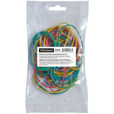 Банковская резинка 50г OfficeSpace, диаметр 60мм, ассорти, европодвес