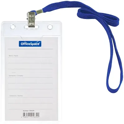 - Сколько стоит Бейдж вертикальный OfficeSpace, 63*105мм (размер вставки 55*85мм), с клипсой на синем шнурке?