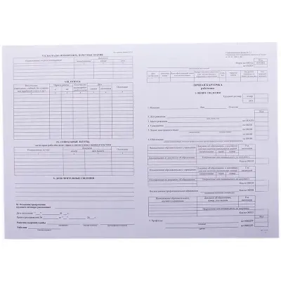 Бланки поставляются в упаковке по 50 экземпляров, запечатанной в термоусадочную плёнку, что надёжно защищает их от загрязнений, влаги и заломов при хранении и транспортировке. Такая фасовка удобна для кадровых отделов средних и крупных предприятий, а также для бухгалтерий и учебных заведений, которые ведут учёт большого количества сотрудников. Формат А3 обеспечивает необходимое пространство для внесения всех обязательных сведений без сокращений.