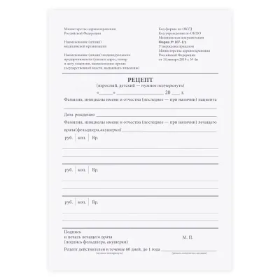 Бланк медицинский рецептурный (форма 107-1/у), А5, офсет, 100 экз., в пленке т/у